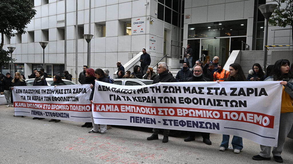 Κανένας ναυτεργάτης σε εμπόλεμη ζώνη» είναι το μήνυμα που έστειλε ο Πειραιάς με τον συμβολικό αποκλεισμό της Ένωσης Ελλήνων Εφοπλιστών από τα ναυτεργατικά σωματεία ΠΕΜΕΝ και ΣΤΕΦΕΝΣΩΝ και άλλους φορείς της πόλης.